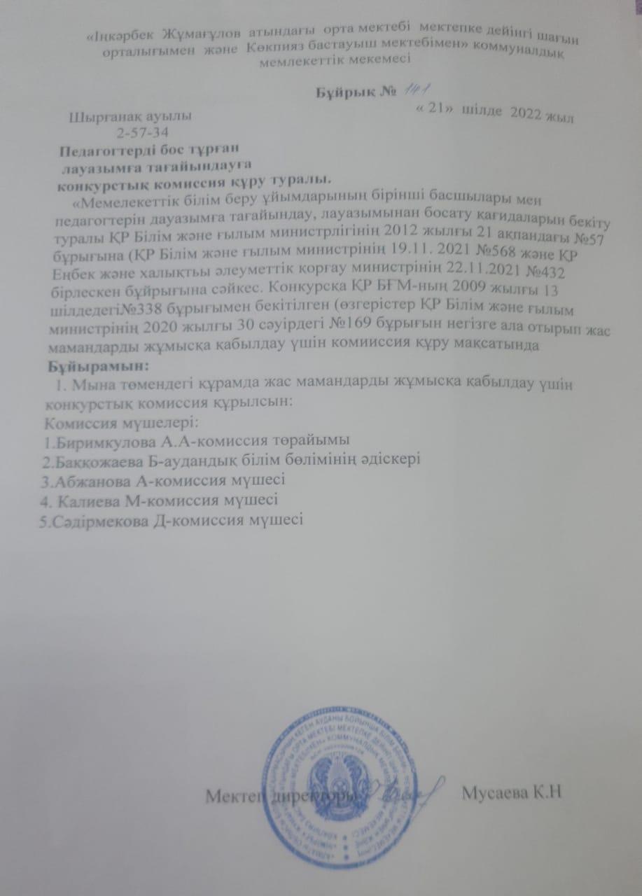 01 сентябрь 2022 0 1 2 3 4 5 Педагогтерді юос тұрған тауазымға тағайындауға комиссия құру туралы 2022-2023 оқу жылы