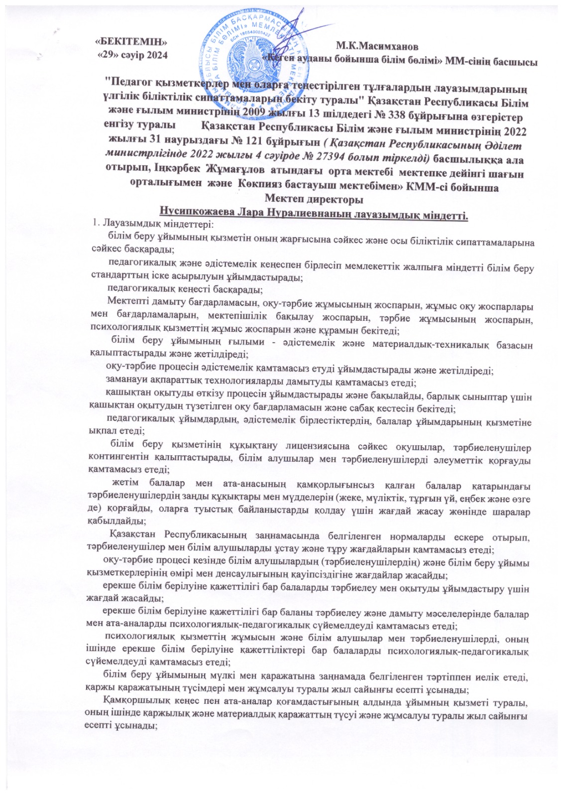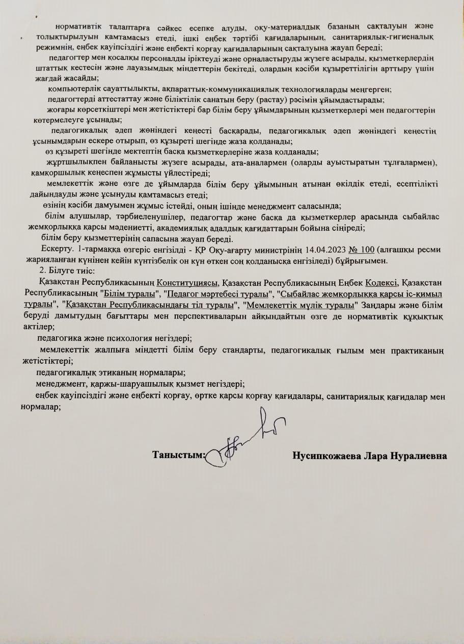 Мектеп басшысы Нусипкожаева Лара Нуралиевна » 'Іңкәрбек Жұмағұлов атындағы орта мектебі